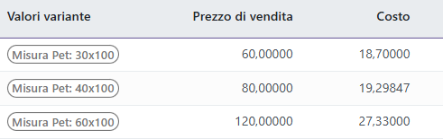 | Misura Pet | 30x100 oppure 37x100 oppure 40x100 oppure 60x100 |